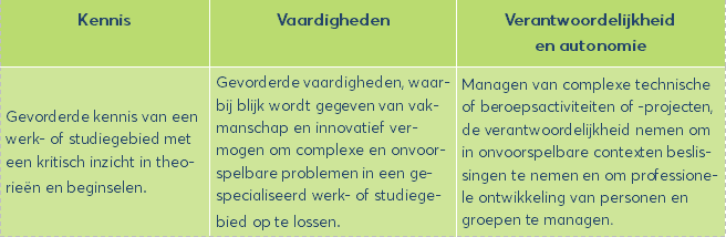 Het eindniveau voor een bachelor (niveau 6) in een notendop: