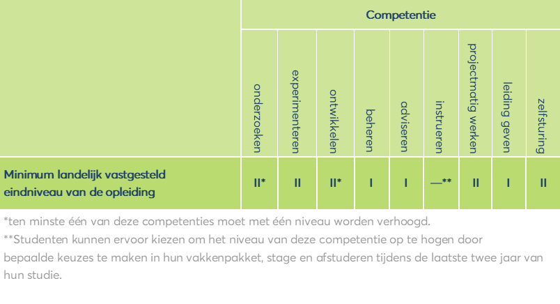 - Sociale en communicatieve vaardigheden: samenwerken, rapporteren en presenteren (internationaal in ieder geval in het Engels, lokaal bijvoorbeeld in het Nederlands), projectmatig werken